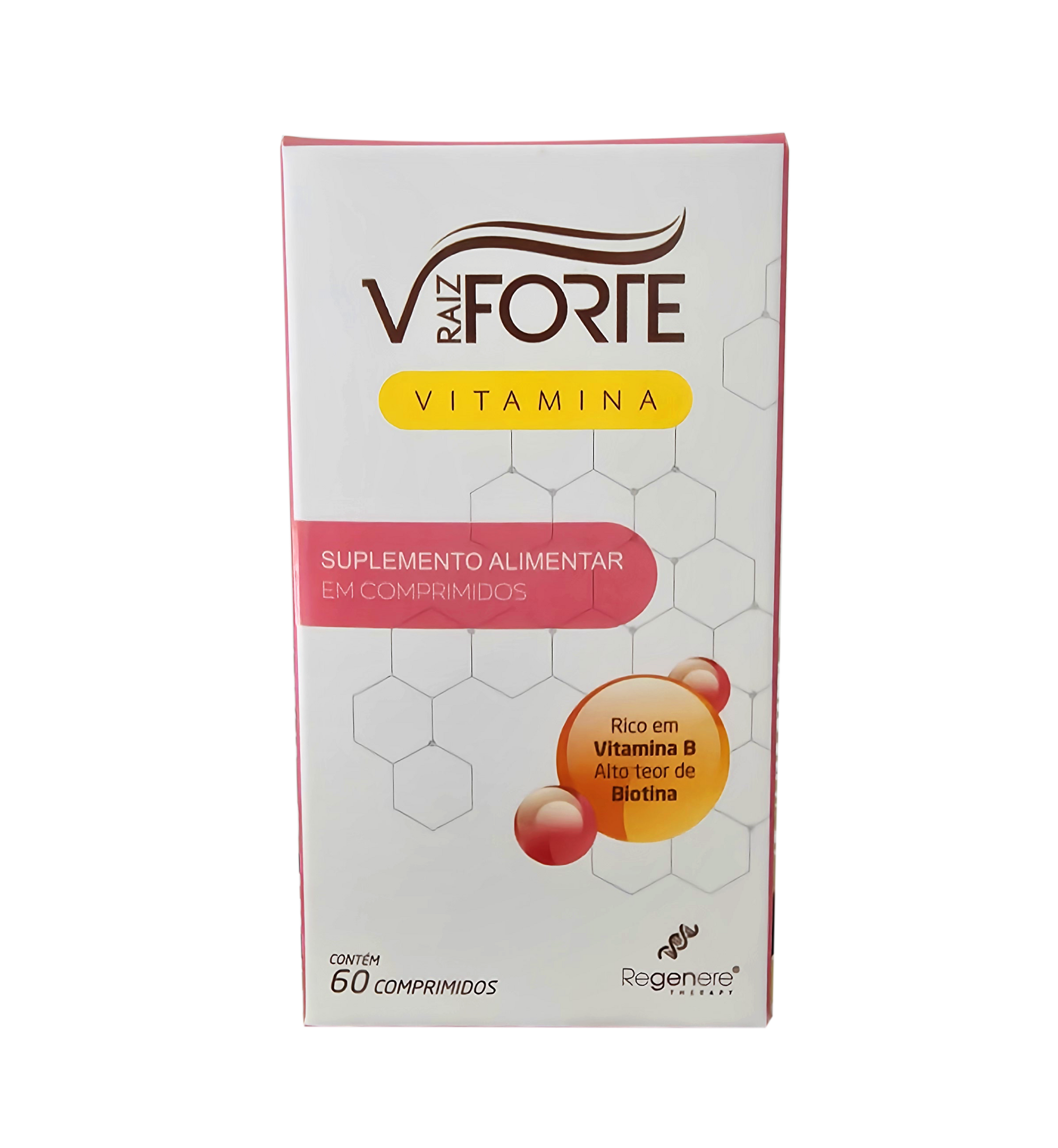O suplemento vitamínico Raiz Forte Regenere Therapy® possui ingredientes que melhoram a saúde e qualidade dos cabelos e unhas. Indicado por dermatologistas, possui combinação sinérgica de Biotina, Vitaminas e Minerais essenciais, que contribuem para o fortalecimento de cabelos e unhas.